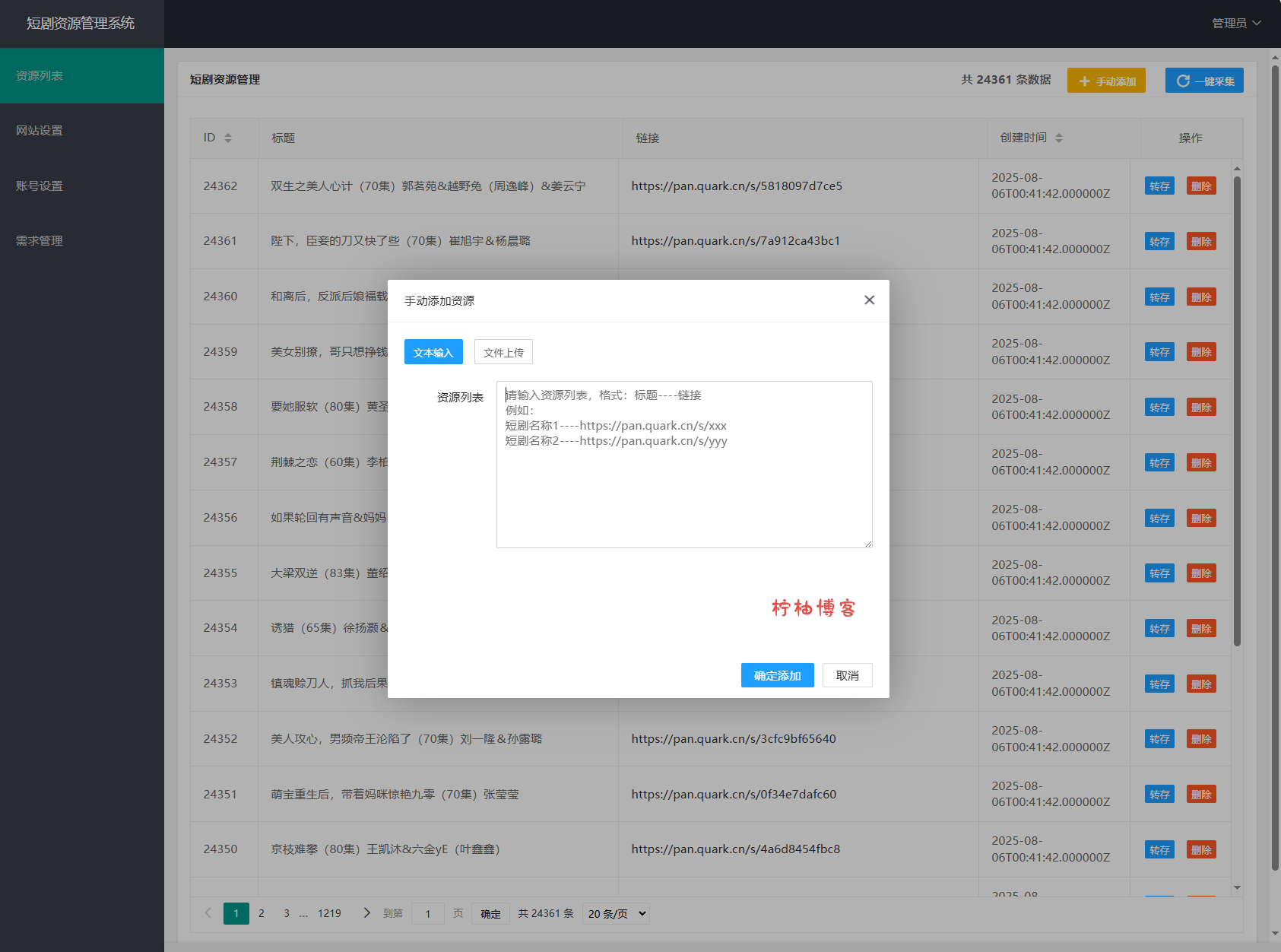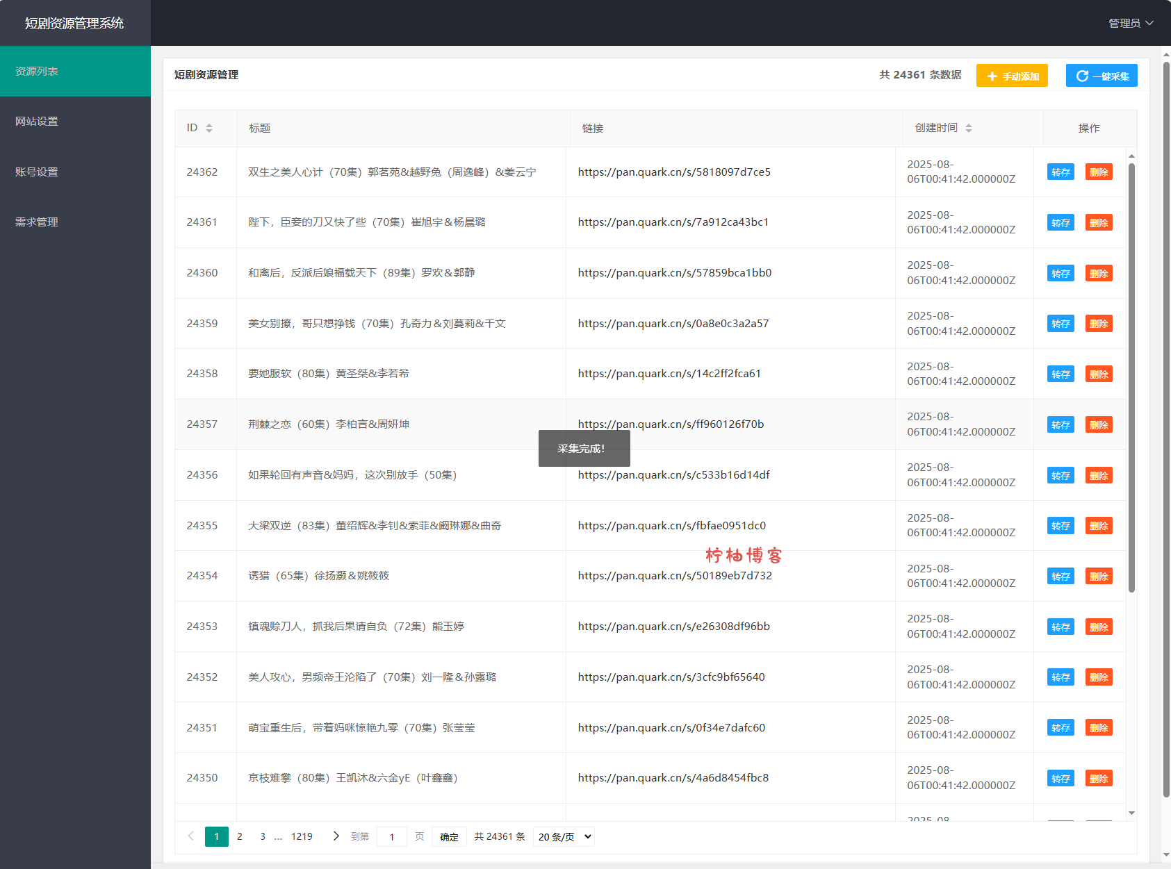 网盘短剧资源转存项目源码 支持夸克 带后台 附教程